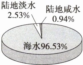 1. 根据下图所示的地球咸水、淡水储量比判断,下列说法错误的是(