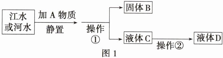 5. 某兴趣小组在实验室模拟水厂将浑浊的江水或河水净化成自来水。实验流程如图1所示,请回答下列问题。