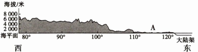 下图为沿 32°N 绘制的中国地势起伏示意图。据此完成 3~4 题。