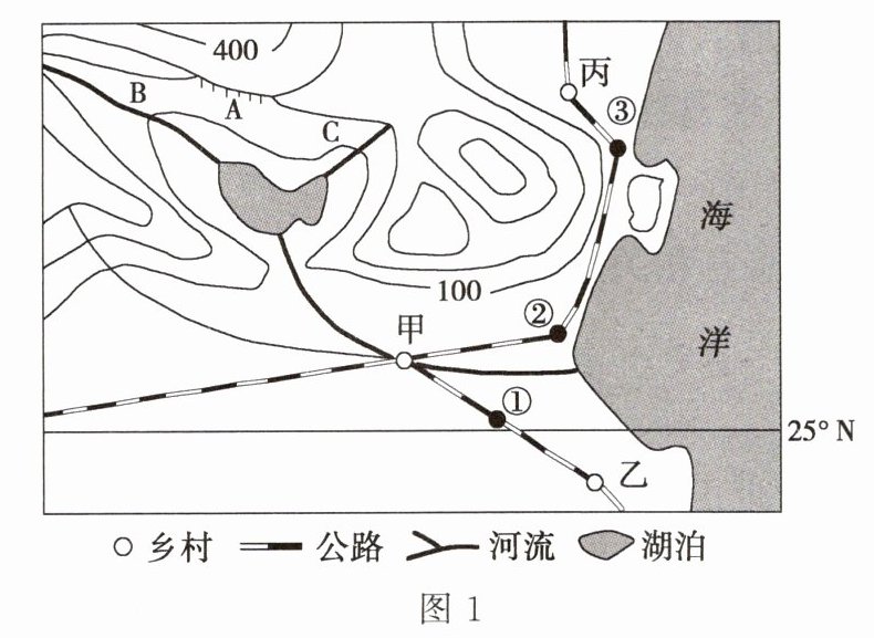 (3)同学们在谋划甲、乙、丙三个乡村的未来发展中,认为最有可能发展为城镇的是