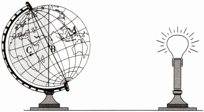 下图为利用地球仪演示地球自转过程中的一幅光照图。据此完成 2~3 题。