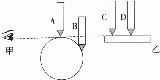 (1)甲同学不动,眼睛保持与木板等高,乙同学将竖直的铅笔由 C 向 D 缓慢移动,甲同学观察到随着铅笔位置的变化,能够看到的铅笔长度