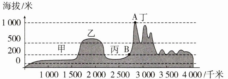 2. 甲、乙、丙、丁分别对应的地形类型是(