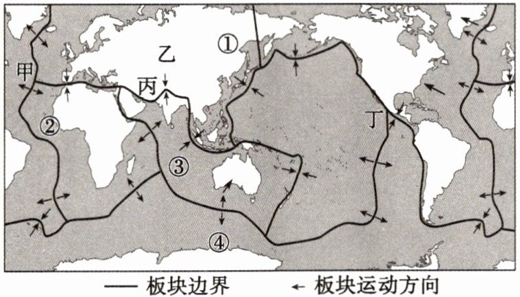 下图为全球六大板块分布图。据此完成 1~2 题。