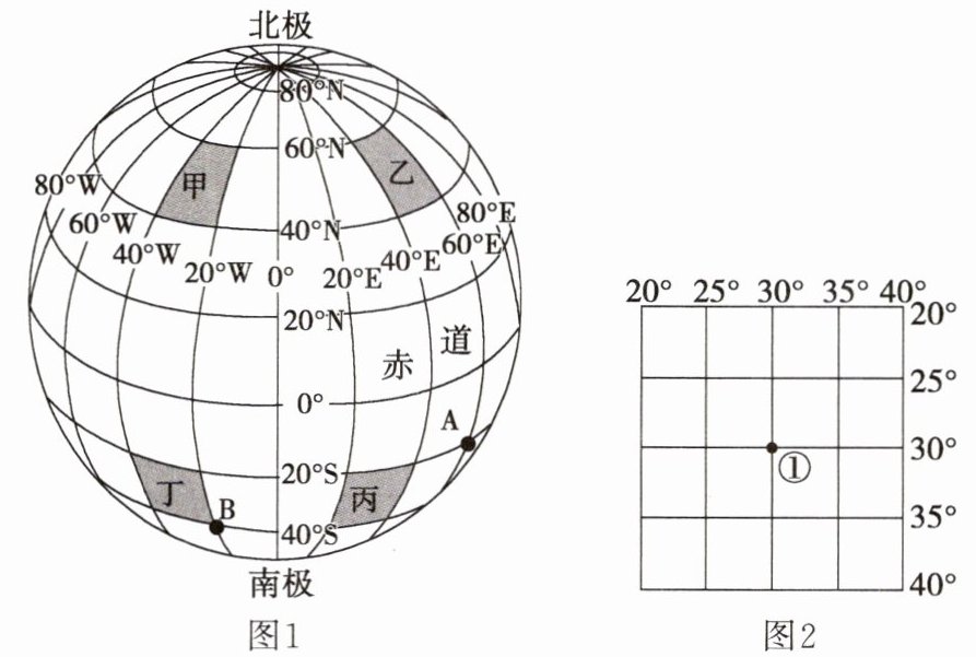 (1)写出图2中①点的经纬度位置: