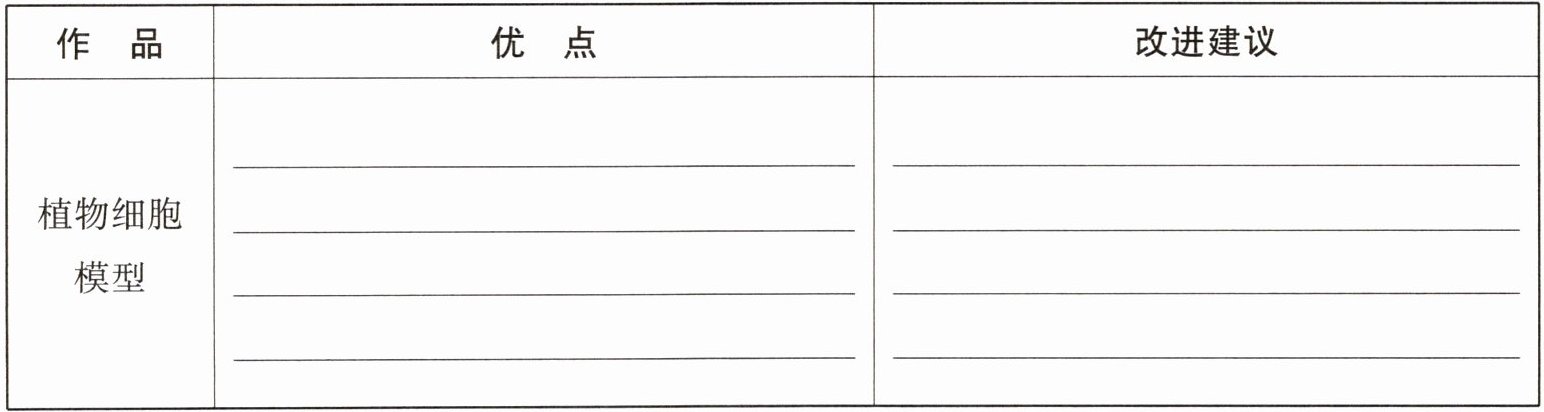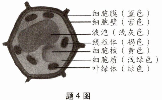 4. (实验探究)七年级(1)班的同学们在学习关于细胞的内容时,在老师的带领下开展了一项有趣的活动——制作植物细胞模型。老师为同学们提出了几点建议:①结构科学而准确,如植物细胞的重要结构齐全,且位置、形状、大小比例适当;②材料选择现成的,或容易塑造成所需形状的,要无害、经济、易得;③立体感要强;④制作精细、美观。
