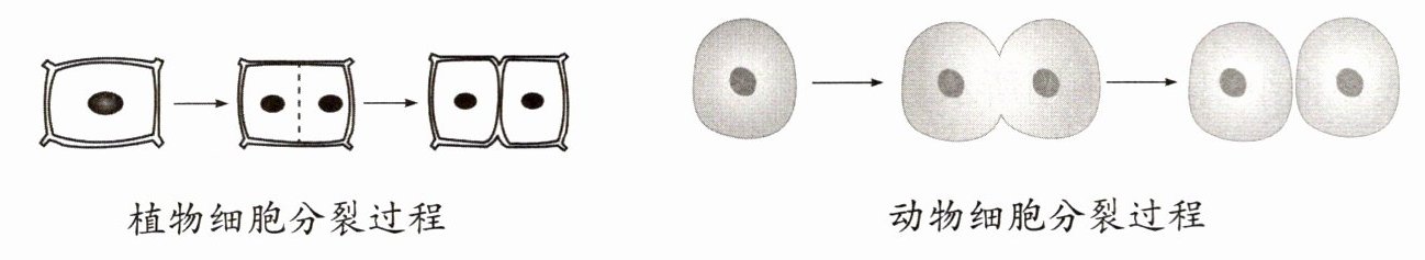 一般也平均分成两份。一个动物细胞就这样分裂形成两个子细胞。如果是植物细胞,两个子细胞还会形成新的细胞壁