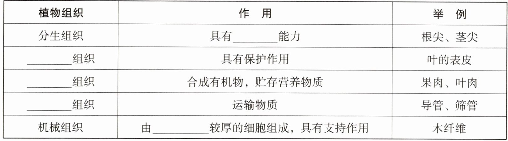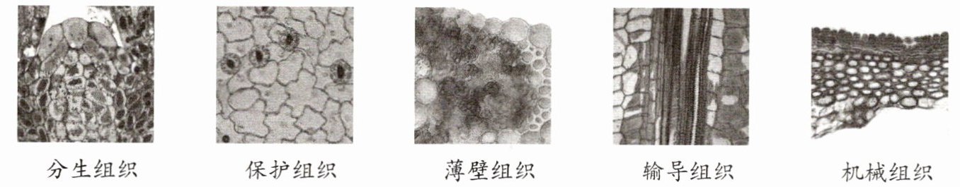 7. 植物体中,细胞分化形成的组织如下图所示: