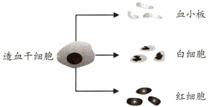 【例3】(2022广州)健康人的骨髓中具有造血干细胞,通过医学检查、配型后,植入白血病患者体内,能给患者不断补充血细胞。下图是造血干细胞补充血细胞的部分过程示意图,该过程是 (