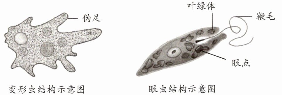 4. 其他单细胞生物:变形虫和眼虫(如下图)。