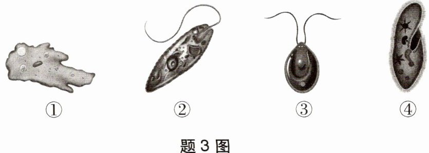 3. 关于题3图4种单细胞生物的说法中,正确的是(