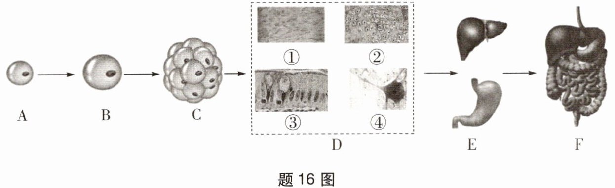 16. (读图理解)题16图是部分人体结构层次示意图。