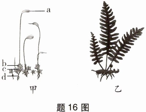 (1) 在溪边岩石上,生物学习小组发现了葫芦藓 (如图甲)。葫芦藓依靠 [d]