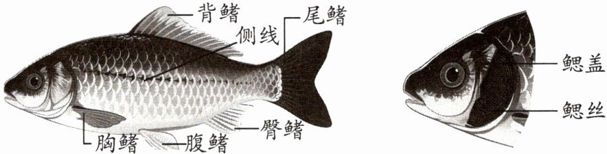 型,体表被覆鳞片且富有黏液,能减小水的阻力;用鳃