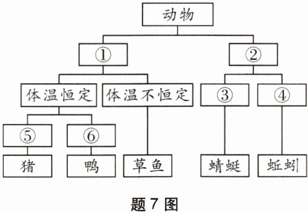 7. 建设新型农庄,开展乡村旅游是落实乡村振兴计划的好举措。题7图含有某农庄养殖或自然生长的部分动物的分类信息,下列相关叙述中,