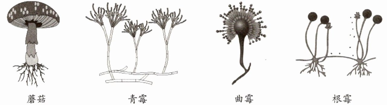 (1) 多细胞真菌(如下图):蕈菌(常见的有蘑菇)和霉菌等。