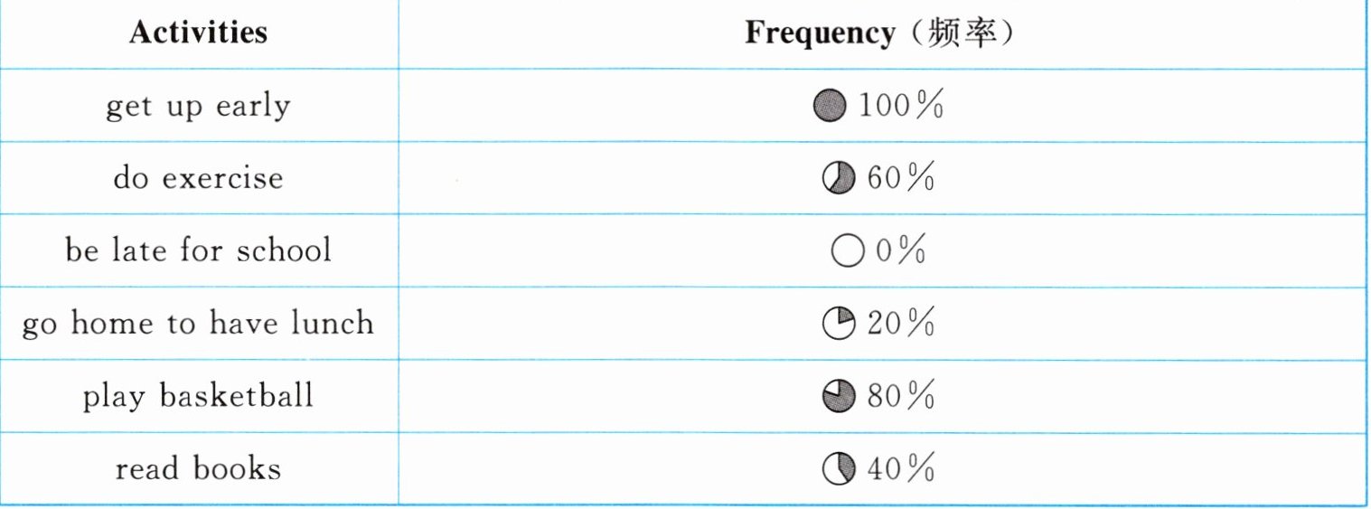Ⅳ.1.often does exercise 2.is never late for school 3.sometimes goes home to have lunch 4.usually plays basketball 5.sometimes reads books