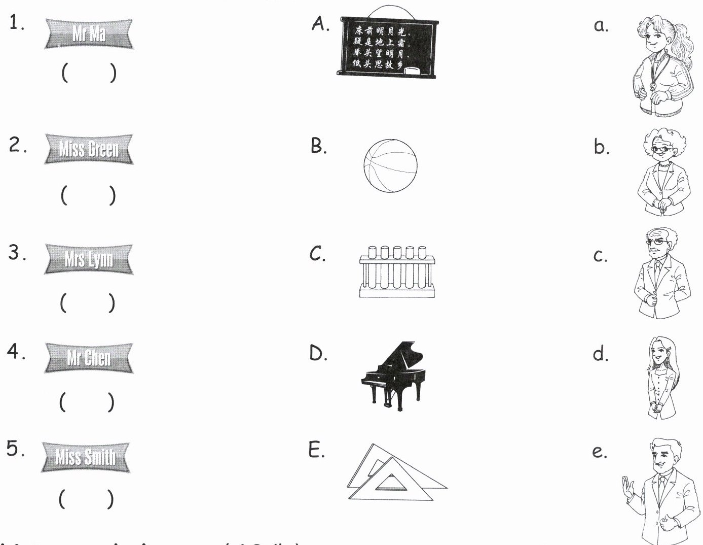 ) 1. Who's my English teacher?A. Mr Zhao. B. Mr Ma. C. Miss Liu.