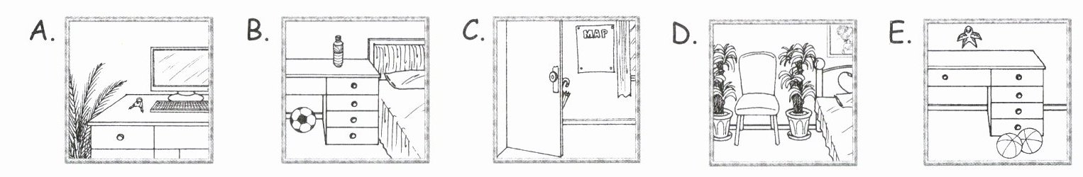 ( ) 3. I'm Amy. This is my room. There are two keys near the computer. There is a plant beside the desk.