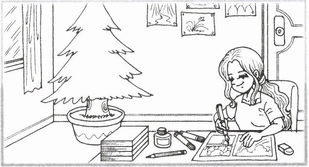 ( ) 5. I'm Bill. This is my room. There is a chair between two plants. What's above the bed? It's a photo.