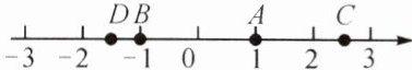 (2)点C向左移动6个单位长度到达点D,则点D表示的数为−3。