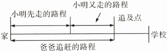 5. 小明每天早上要到距家 1 000 m 的学校上学.一天,小明以 80 m/min 的速度从家出发去上学,5 min 后,小明的爸爸发现他忘了带数学书.于是,爸爸立即以 180 m/min 的速度去追小明,并且在途中追上了他.爸爸追上小明用了多长时间?