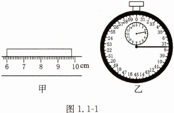 3. 用图1.1 - 1甲所示的刻度尺测物体的长度,则刻度尺的分度值是