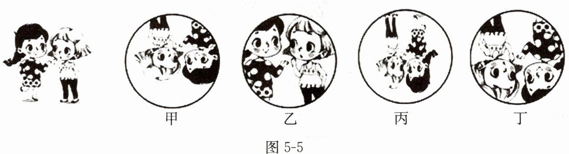 8. 如图5-5所示,最左边为某书的插图,甲、乙、丙、丁是通过凸透镜所看到的插图的像。若凸透镜正对插图由远处逐渐靠近插图,则看到插图的像的先后顺序正确的是(