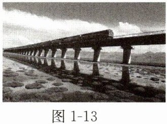 20. 甲、乙两地的距离是 900 km,列车早上 7:30 从甲地出发开往乙地,途中停靠了几个车站,于当日 16:30 到达乙地。列车行驶途中以 144 km/h 的速度匀速通过长度为 400 m 的桥梁(如图 1 - 13 所示),列车全部通过桥梁的时间是 25 s。求: