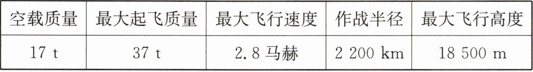 21. 歼 - 20 是我国自主研制的一款具备高隐身性、高态势感知、高机动性等能力的隐形制空战斗机,其部分技术参数如表所示(“马赫”指的是飞行器速度与声音速度的比值,声音在空气中的传播速度约为 1 200 km/h。“作战半径”是指战机携带正常作战载荷,在不进行空中加油的情况下,自机场起飞,沿指定航线飞行,执行完任务后,返回原机场所能达到的最远单程距离)。问:
