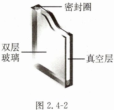 9. 如图 2.4 - 2 所示,真空隔音玻璃是将两片平板玻璃四周密封起来,把玻璃间的空气抽出,并密封排气口,形成真空层。若密封圈漏气,隔音效果会降低。由此可知,真空玻璃隔音效果好,是因为(