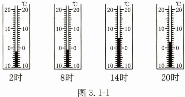 1. 气象学里的平均气温是指一天当中的2时、8时、14时、20时这四个时刻气温的平均值。如图3.1-1所示是某地某日这四个时刻的气温,则此地的最高气温是