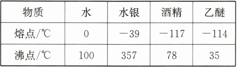 )A.可以使用水银温度计测量南极最低的温度(约为-88℃)