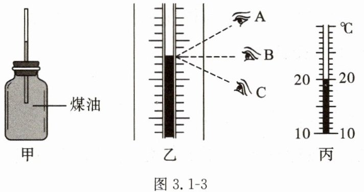 (选填“A”“B”或“C”)方法是正确的;丙图中温度计的示数为20