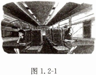 7. 如图1.2-1所示,两列火车并排停在站台上,小强坐在车厢中向另一列火车观望。突然,他觉得自己的列车开始缓缓地前进了,直到“驶过”了旁边列车的车尾时才发现,实际上他和小红乘坐的列车还停在原地。对此,下列说法不正确的是 (