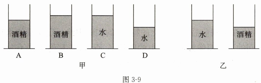 都相同。(2) 实验室已提供了用规格相同的容器分别装有酒精和水的 A、B、C、D 4 个样品,如甲图所示。按实验要求,应选择