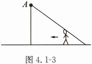 5. 如图4.1 - 3所示,一个人晚上沿马路散步,经过一盏路灯,此时在$A$点处的路灯照射下,人的影子长短会相应发生变化,其变化情况应该是(