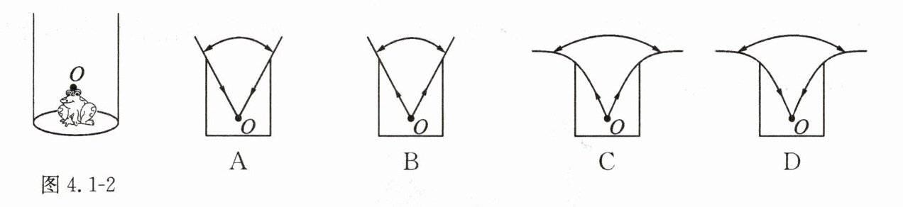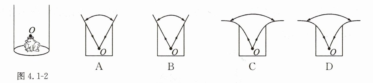 4. 如图4.1 - 2所示,枯井中的青蛙位于井底$O$点“坐井观天”,选项中对青蛙通过井口的观察范围表示正确的是(