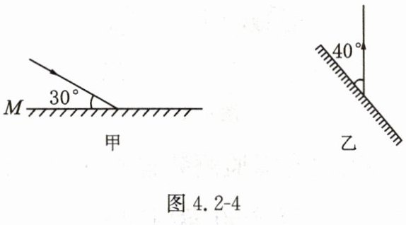 7. 请完成图4.2-4甲、乙中的光路图,并标出反射角的大小。