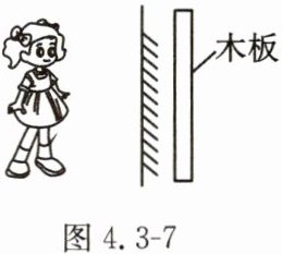 $m$。现将一块和镜面一样大的木板放在镜子后$1m$处,如图 4.3 - 7 所示,这时她仍能