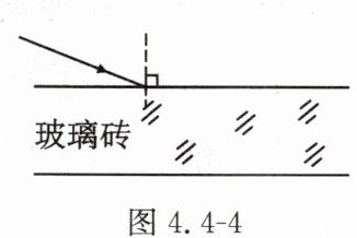 8. 如图4.4 - 4所示,一束单色红激光斜射到一长方体玻璃砖的上表面。在图中大致画出光线在玻璃砖内和从玻璃砖下表面射出的光路图(只画出折射光线)。