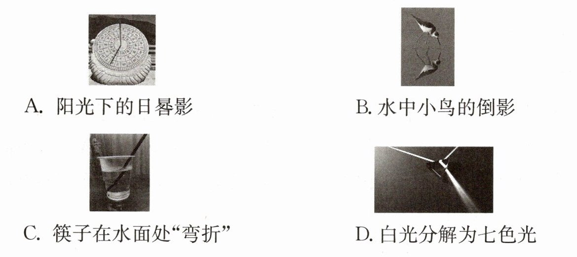 )A.看到湖水中鱼的位置比实际位置浅,是因为发生了光的反射