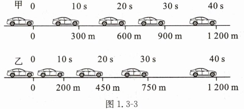 7. 甲、乙两辆汽车在平直的公路上行驶,在某段时间内的运动过程如图$1.3 - 3$所示。关于甲、乙两辆车的运动情况,说法错误的是(