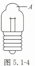 1. 如图 5.1 - 4 所示是微型手电筒所用的小灯泡,小灯泡前端的 $ A $ 部分相当于____,对光有____作用。