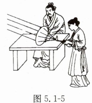 2. 如图 5.1 - 5 所示,晋代张华的《博物志》记载:“削冰令圆,举以向日,以艾承其影,则火生。”“削冰令圆”就是把冰块制成