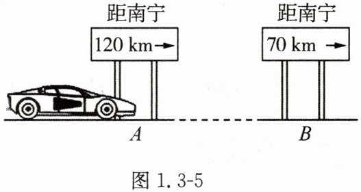 10. 如图$1.3 - 5$所示,轿车在高速公路上从某地往南宁方向匀速行驶。当到达$A$地时,车内的时钟显示为$10:15$;到达$B$地时,时钟显示为$10:45$。求: