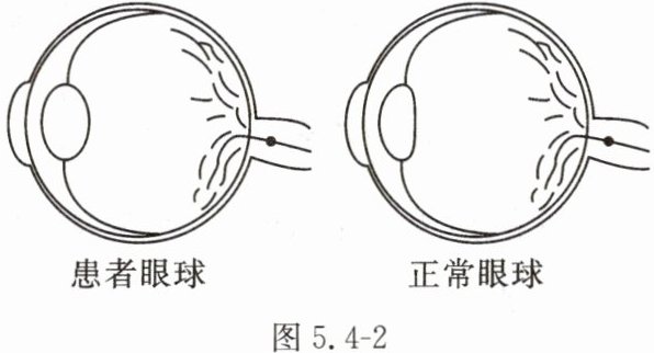 6. 如图5.4 - 2所示为青少年眼病患者眼球与正常眼球对比图。关于该患者的晶状体及视力矫正,则说法正确的是(