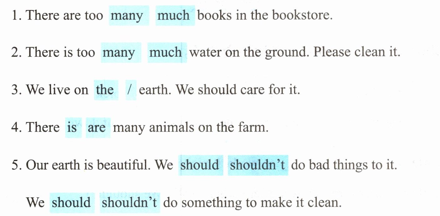 1. many 2. much 3. the 4. are 5. shouldn't, should
