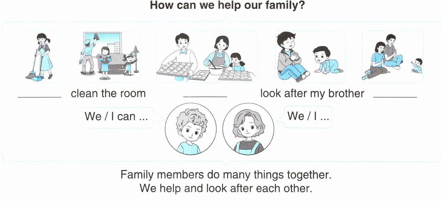 1. factory worker 2. clean the room;sweep the floor;cook;look after