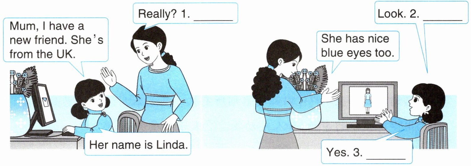 )1. I have a new friend. He is tall. He has short black hair.(